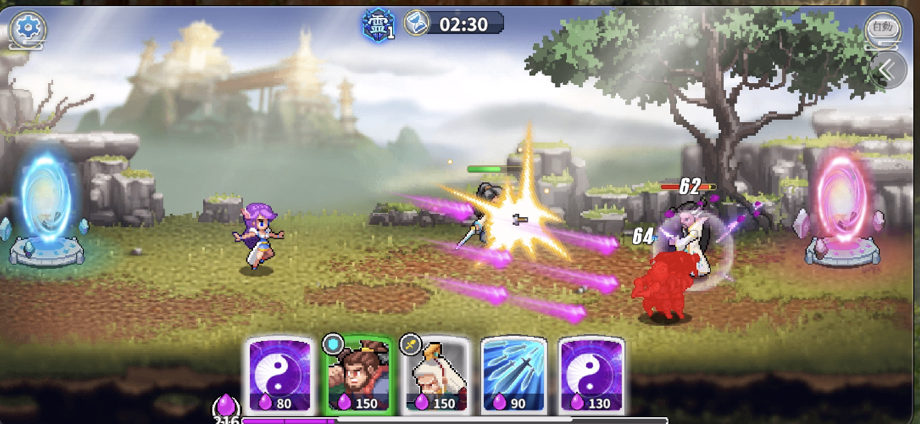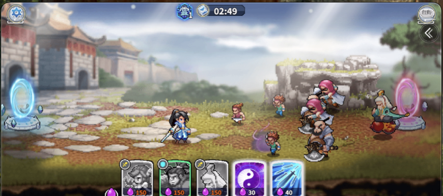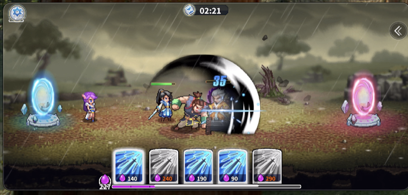 プレイヤーは召喚師となり、様々な英雄を召喚してチームを編成し、続々と現れるドットキャラのモンスターを撃破してアイテムや経験値を獲得していきます。