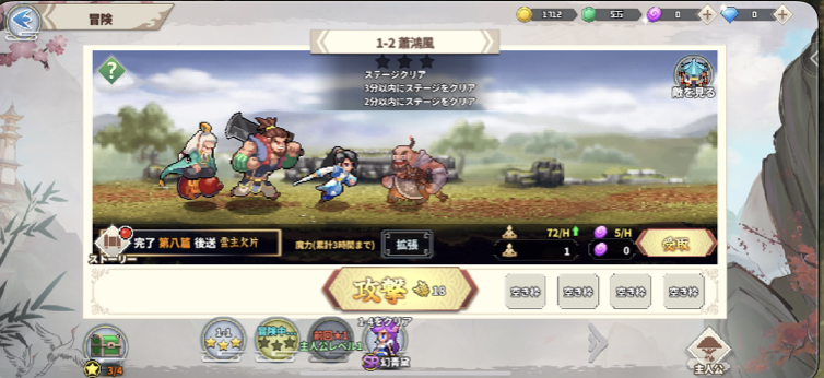 放置機能を使うことでキャラクター育成や施設拡大できます。