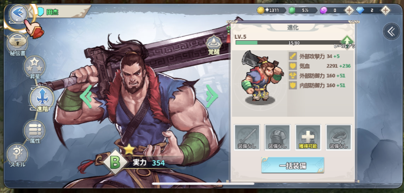 気になるキャラ育成はパラメータだけでなく、武器、防具などを装備することでも育成強化ができます。