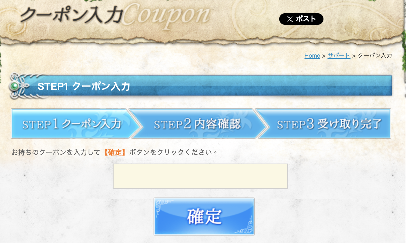 入力は公式のクーポン入力ページで行います。