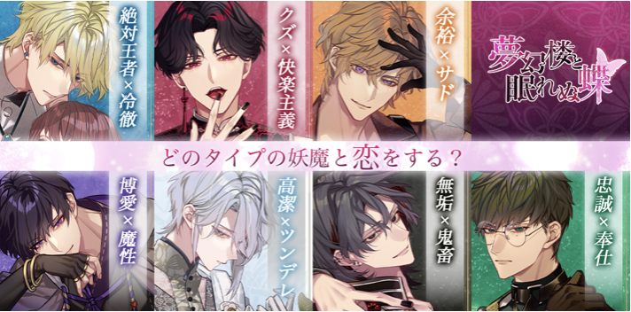 「夢幻楼と眠れぬ蝶」は夢の中の遊郭に囚われた「妖魔」と恋愛を楽しめる恋愛シミュレーションゲームです。