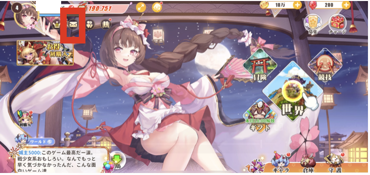 ⑤ゲーム内「メール」アイコンを選択