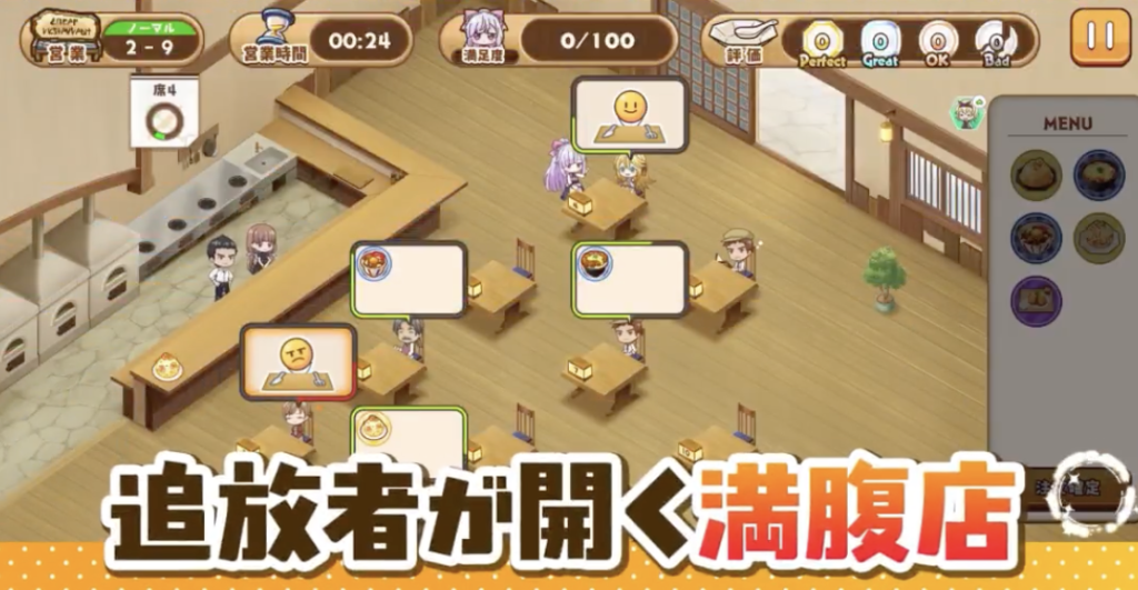 お客さんが注文する料理は様々なので、ただ料理を提供するだけではクリアできません。