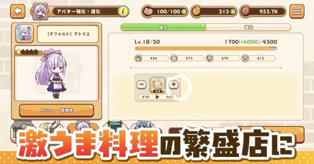 「衣装チェンジ」「メニュー編成」という2つの要素が、ゲームの面白さをさらに引き出してくれています。