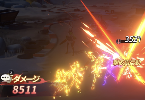 キャラクターによっては連続コンボが決まるような演出もあります。