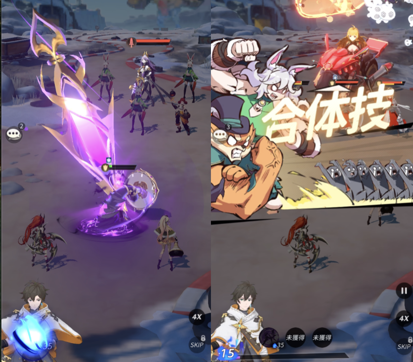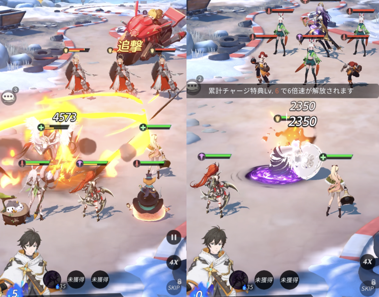 バトルはターン制バトルですが、基本的にフルオートで進みます。最大4倍速までスピードアップできます。