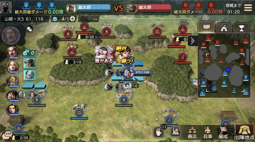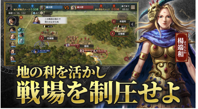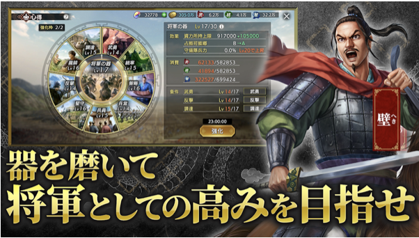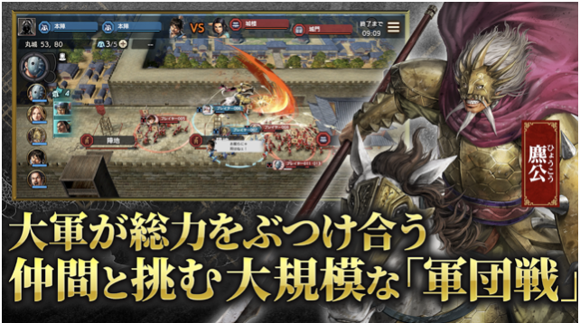 武将と陣形を組み合わせ、自分だけの最強軍団を編成して戦場で戦う楽しさあり!