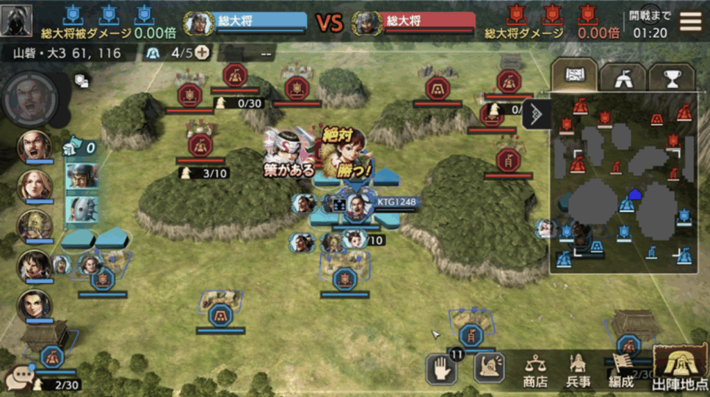森に隠れてから奇襲するなど、戦場の特徴を見極めることが勝利に繋がる!戦場に合わせて武将たちの編成や陣形を組み換えていくのが攻略のポイントです、