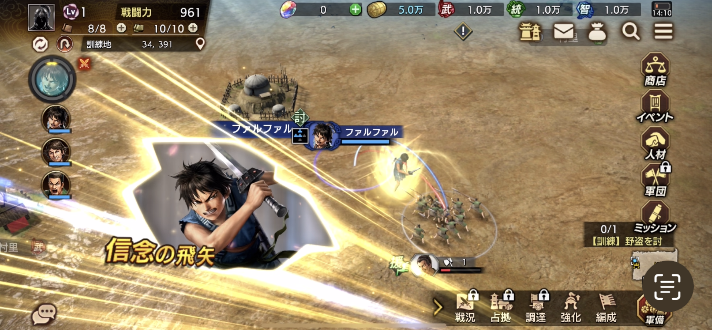 三国志覇道、信長の野望覇道などと比べても、キングダム覇道は全般的に遊びやすさ、わかりやすさ重視でシンプルな設計になっています。