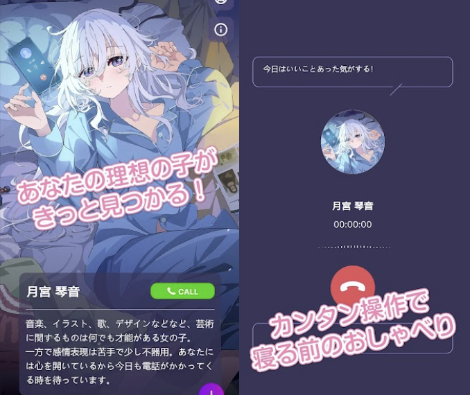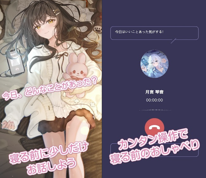 よくあるAI会話アプリと違って、寝る前、睡眠特化型のAI会話アプリとして人気です。