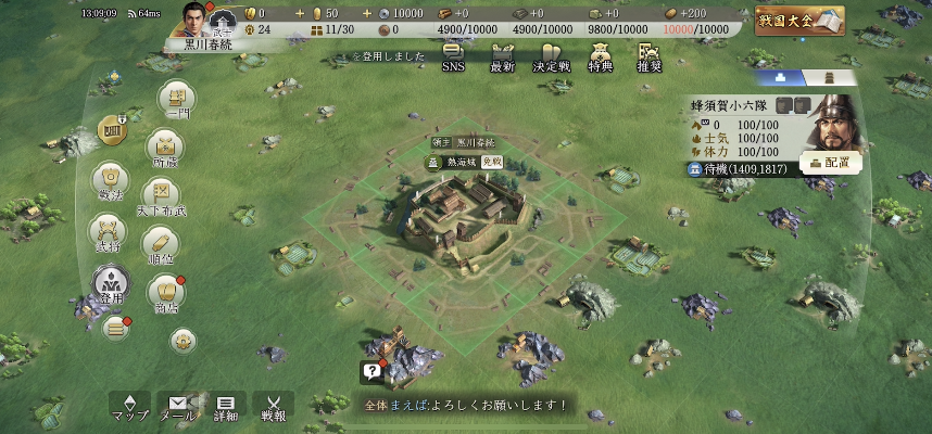「信長の野望・新生」がベースになっていることもあり、必要な要素は網羅されており、お城や城下町をとことん開拓できます。