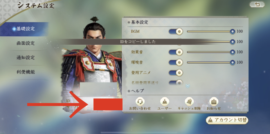 ただし、事前にゲーム内にて「ユーザーID」をコピーしておく必要があります。