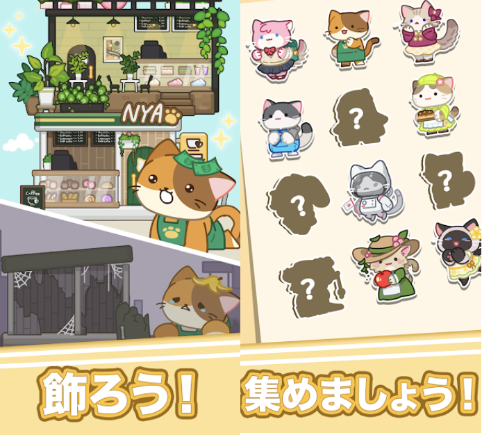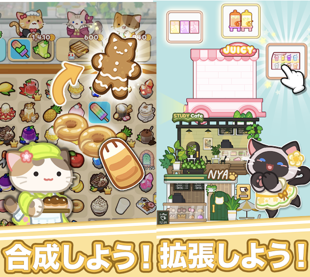 猫が好き、パズルゲームが好き、お店経営ゲームが好き!