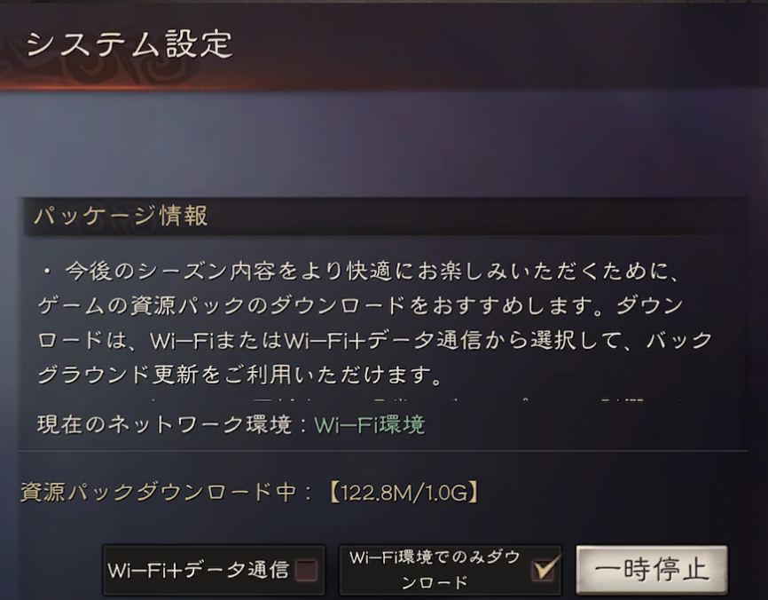 さらに、シーズンごとに用意された「資源パック」をインストールする必要があります。